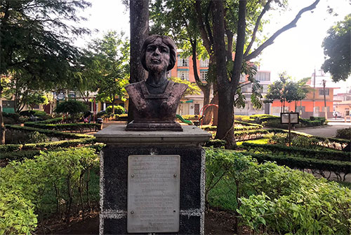 Al pasar nuevamente por el sitio me acerqué —por primera vez después de muchos años— a ver qué decía la placa debajo del busto de la poetisa coatepecana autora de El secreto (1822) y El arca de colores (1929) entra otros, de una gran producción literaria que editó. Y ahí, el texto De fantasía y realidad (1931): “Si quieres vencer, vuelve a comenzar, porque en este mundo hay que hacerlo todo dos veces… o más. ¿Qué es lo que embellece más el rostro? La sonrisa. Todos comienzan. Pocos terminan”.