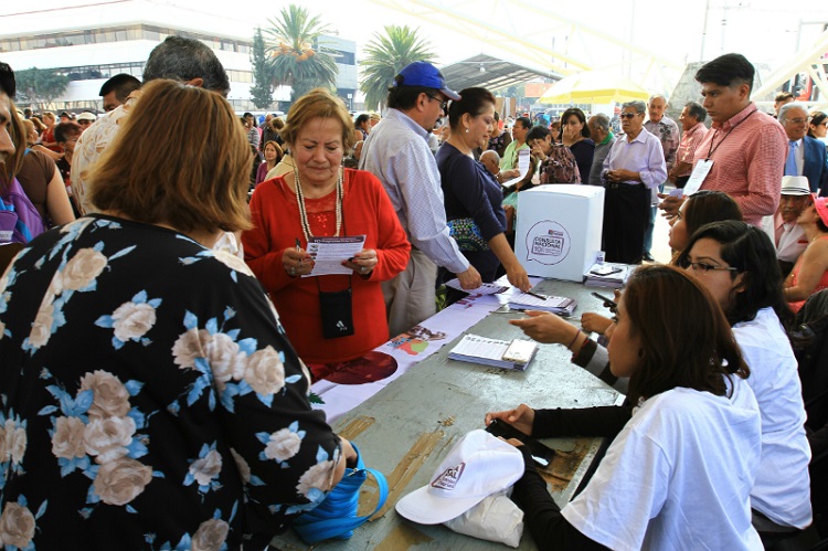 Entre porras y aplausos de la gente que se concentra para emitir su voto, López Obrador abundó que con esta segunda consulta se fortalece el hábito democrático para que la ciudadanía determine con su participación las decisiones importantes para el país.