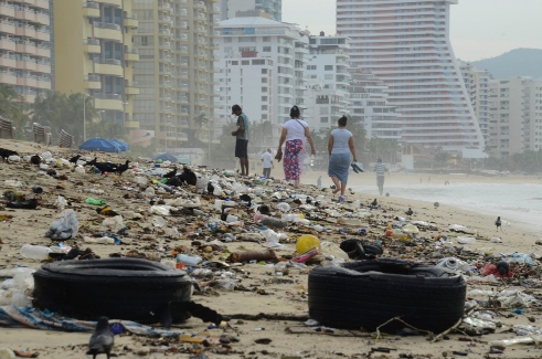 … salen a relucir las obras blandengues de Acapulco Diamante, la suciedad que se ocultaba tras las luces de la Costera, la miseria en las colinas y tras las montañas que enmarcan la que alguna vez fuera llamada la más hermosa bahía del mundo.