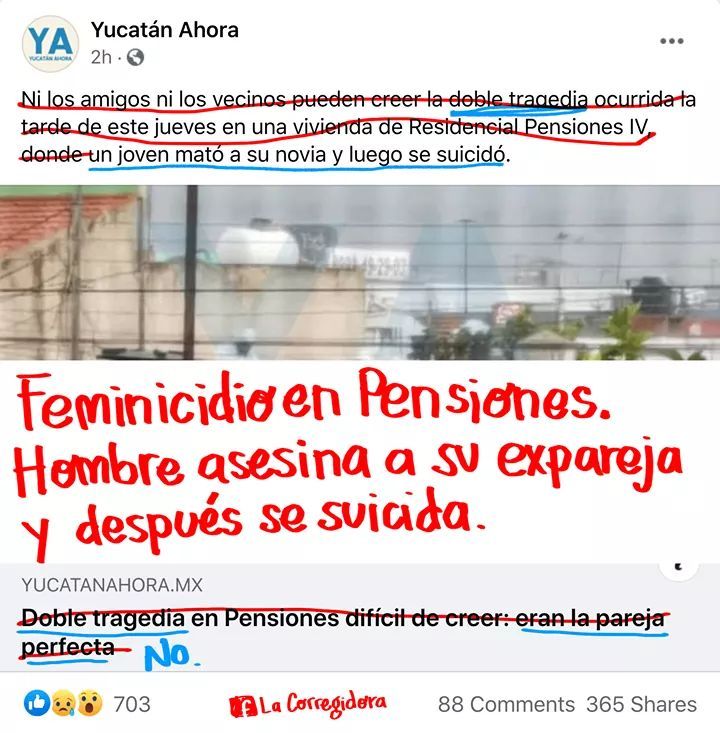 Sin embargo, algunos medios de comunicación y usuarios de redes sociales compartieron la noticia de este feminicidio como un crimen pasional o enfocando la información al suicidio del joven. Los hechos se registraron luego de que la pareja discutieran.