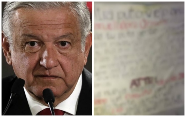 CIUDAD DE MÉXICO, 7 de febrero (AlMomentoMX).— Por segunda ocasión, el presidente Andrés Manuel López Obrador recibió una amenaza a través de una narcomanta, la cual fue firmada presuntamente por miembros de Cártel Arellano Félix y colgada en un puente peatonal en la delegación La Mesa, en Tijuana.