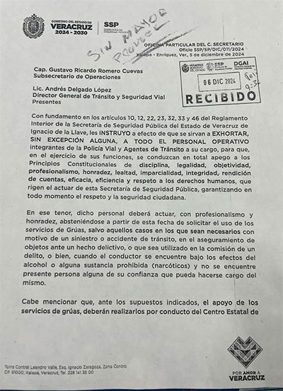 Nunca en la historia reciente de las administraciones públicas veracruzanas había existido una orden tan clara y tan precisa respecto al correcto desempeño de las funciones del personal operativo con tareas de Policía Vial y Agentes de Tránsito.