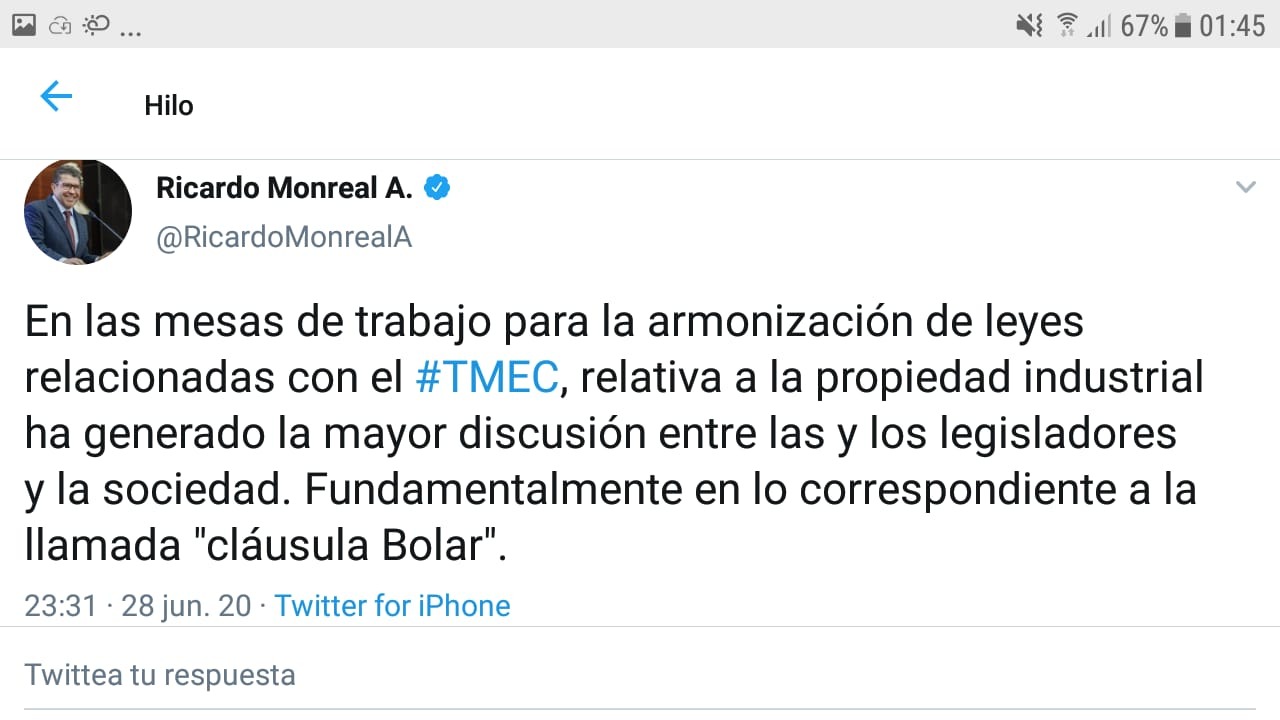 Ricardo Monreal, presidente de la Junta de Coordinación Política (Jucopo) del Senado, aseguró que solo se debatirá T-MEC en el Extraordinario del Senado, así que las propuestas que la oposición buscaba debatir quedaron fuera, según el acuerdo alcanzado.