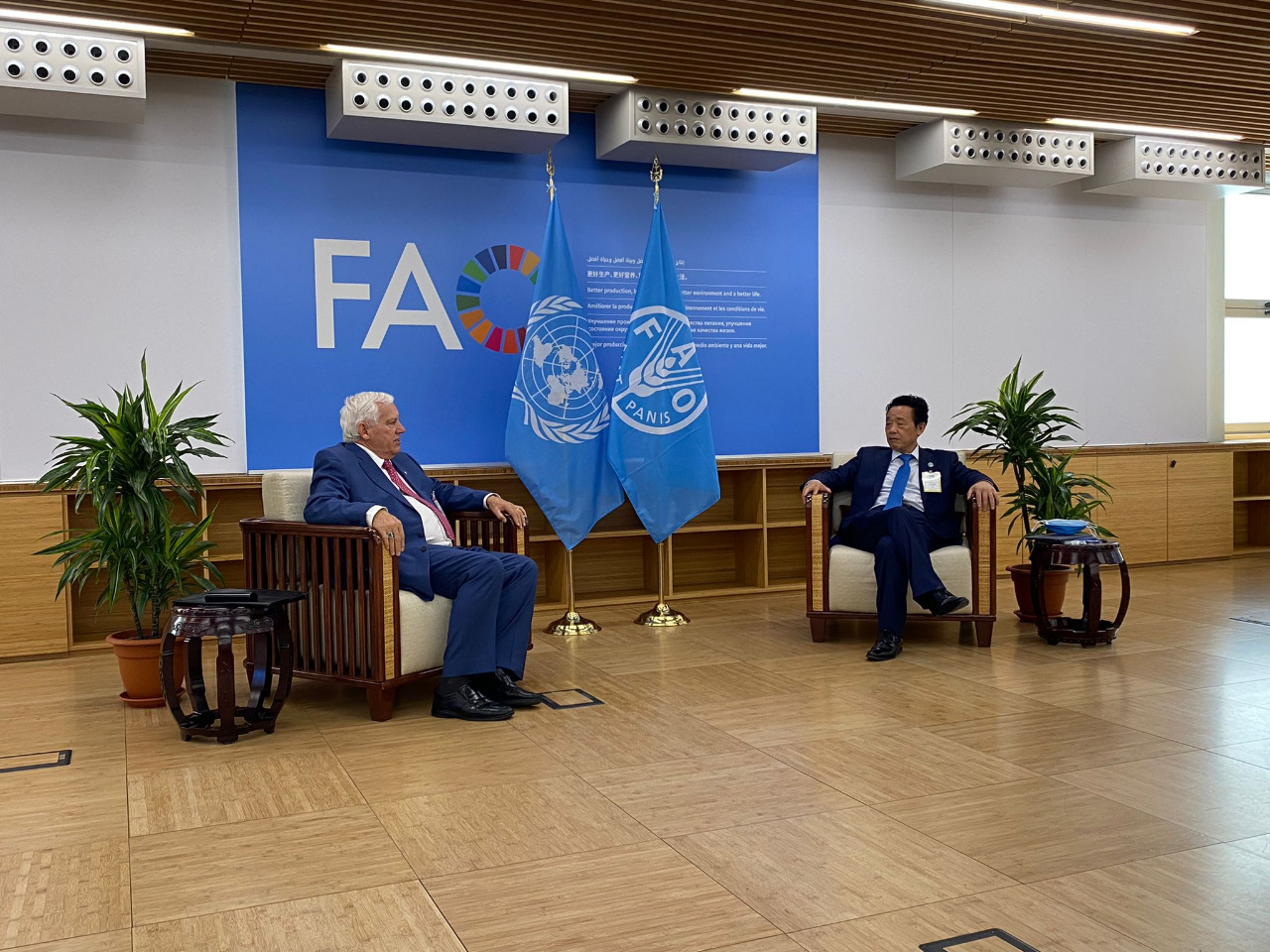 En reunión con el Director General de la #FAO, Qu Dongyu @FAODG, conversamos s/ la importancia de la agricultura en los sistemas alimentarios, así como en fortalecer la cooperación regional y global p/ superar el impacto de la pandemia en los países y las regiones. #UNFSS2021 pic.twitter.com/AXTQt96Bg4