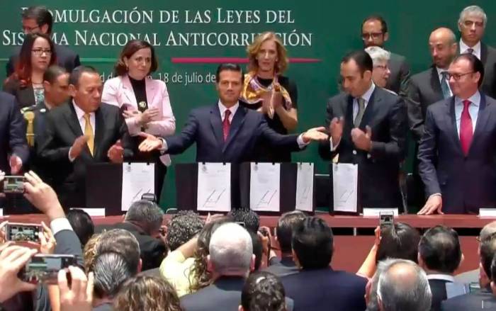 Luego de casi nueve meses de discusión, Peña Nieto promulgó el Sistema Nacional Anticorrupción (SNA) que obliga a los funcionarios públicos a presentar su declaración patrimonial, fiscal y de posible conflicto de intereses.