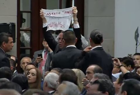 La protesta de Álvaro Delgado se dio justo cuando el mandatario se refería al tema del periodismo: “El ejercicio libre del periodismo es una condición indispensable en toda sociedad democrática, por ello este gobierno es y seguirá siendo respetuoso de la libertad de expresión y de la pluralidad de voces que se expresan en los medios de comunicación; seguiremos trabajando para fortalecer las condiciones que se requieren para el ejercicio pleno de un periodismo”.