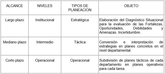 La planeación en cualquier organización, básicamente puede ser de tres tipos: planeación estratégica, planeación táctica y planeación operacional.