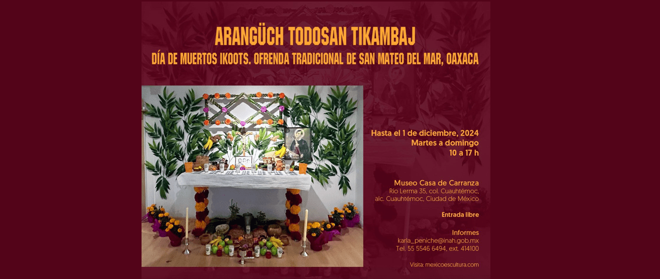 Exposición temporal «Arangüch todosan tikambaj. Día de muertos ikoots». Ofrenda tradicional de San Mateo del Mar, Oaxaca