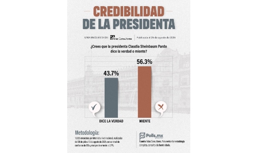 Las luces rojas de la gestión de Claudia Sheinbaum quien aparentemente está al frente de la Administración Pública Federal comienzan a encenderse. En la reciente encuesta del especialista Alejandro Moreno para El Financiero, en la que le da 77% de popularidad su colega en esas mismas páginas Salvador Camarena, las presentó así: “… quienes creen que la mandataria trata mal o muy mal la economía brincó de 20% en abril a 27% en mayo; en corrupción, el aumento negativo fue de 52% a 65%; crimen organizado, mal/muy mal pasó de 61% a 67%. Vaya, hasta en programas sociales la desaprobación creció nueve puntos. Encima, la presidenta (sic) pierde apoyo en lo que fue el tema principal del arranque de año: su relación con Donald Trump. En abril, 50% creía que lo estaba haciendo muy bien/bien, en mayo 50% la desaprueba (sólo 35% sigue viendo ese manejo favorablemente). * * * Vaya para usted mi sincero reconocimiento por haber leído estas líneas. Como siempre, también, le deseo ¡buenas gracias y muchos, muchos días!
