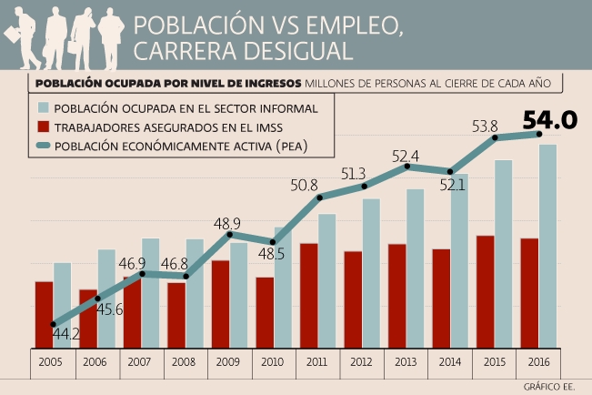 Datos del Instituto Nacional de Estadística y Geografía (INEGI) nos muestran que del 2005 al 2016, por tomar un lapso de ejemplo, el producto medio por trabajador ocupado en el país, creció poco más del doble que sus remuneraciones.
