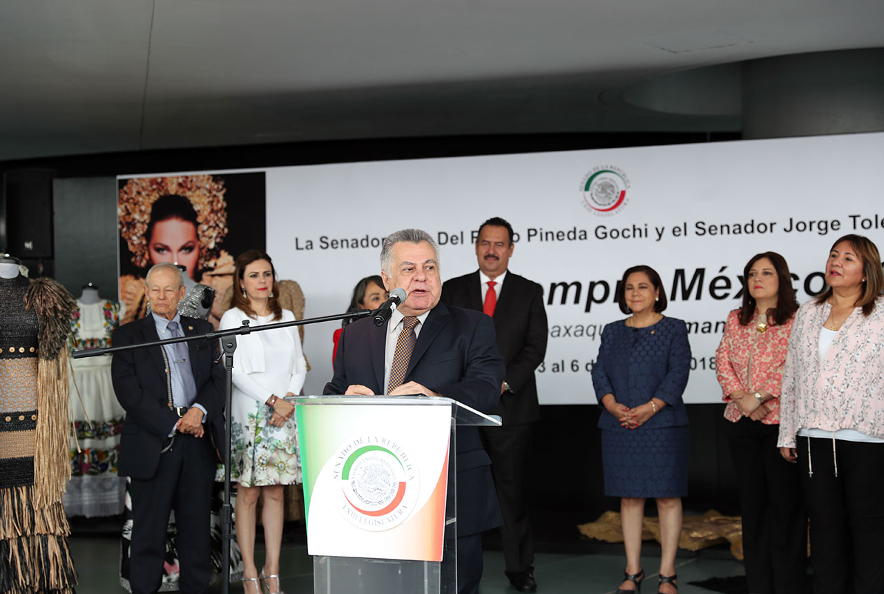 En la inauguración de la exposición, los senadores María del Rocío Pineda Gochi y Jorge Toledo Luis, del Grupo Parlamentario del PRI, destacaron la necesidad de reconocer, impulsar y difundir la riqueza cultural de nuestro país.