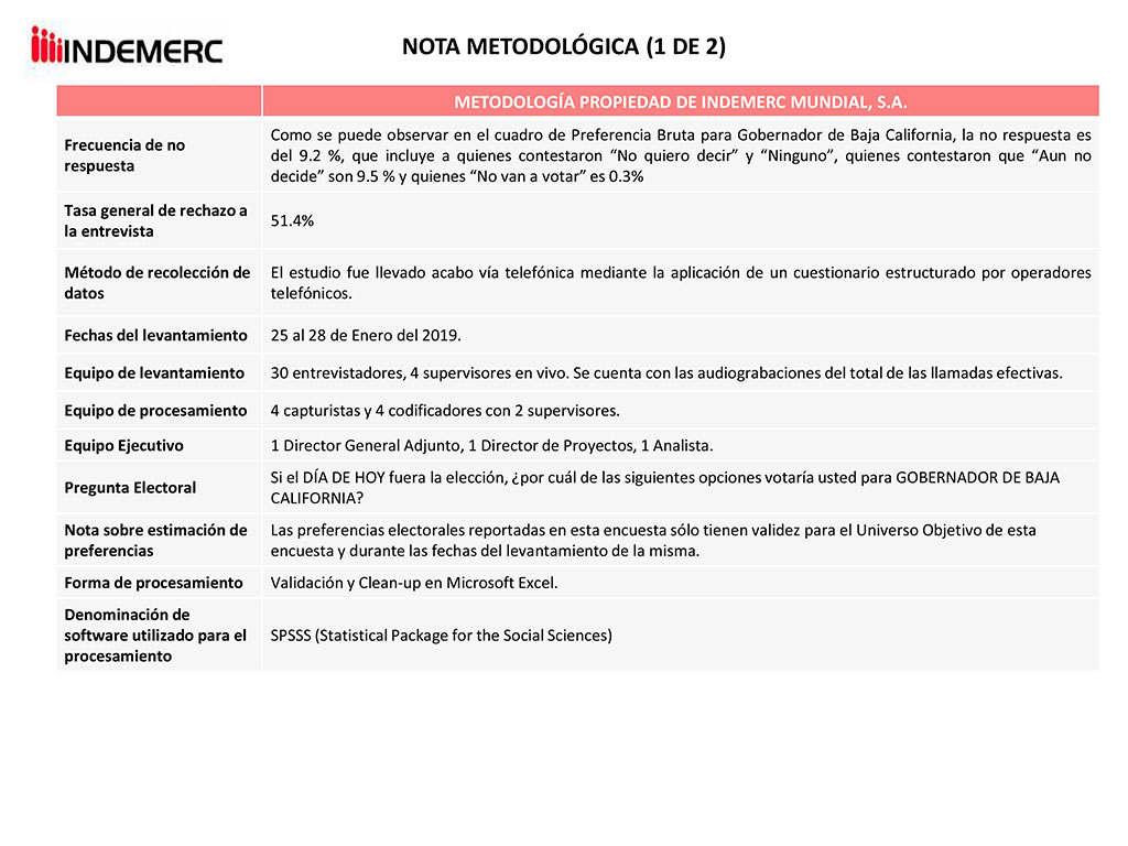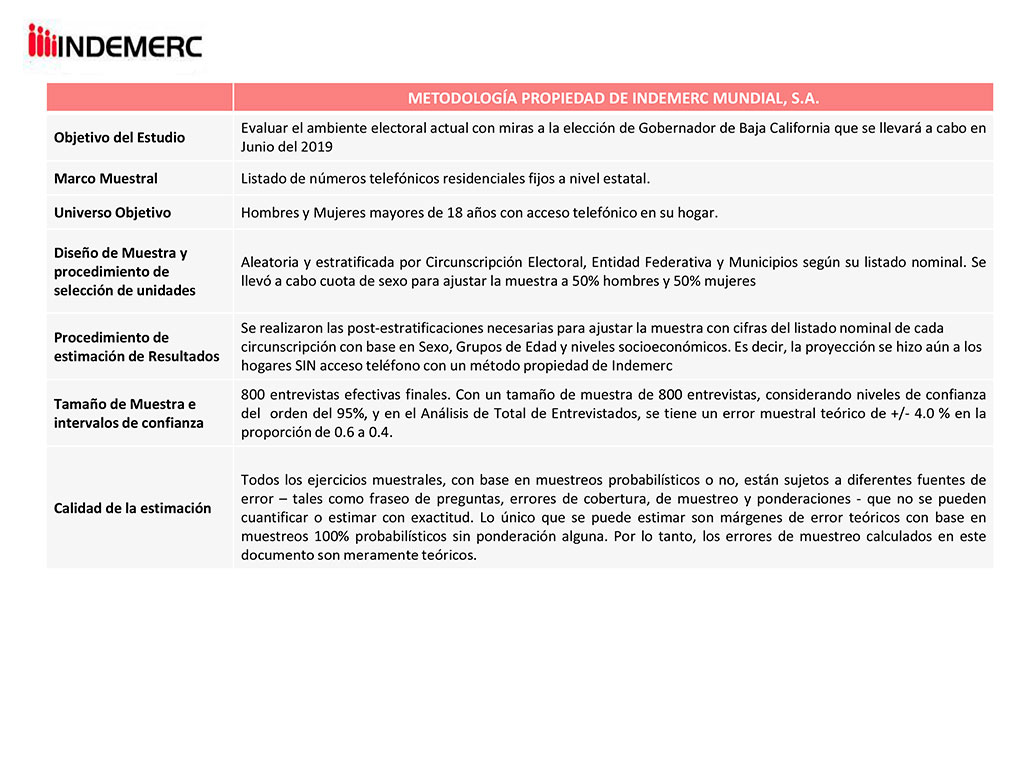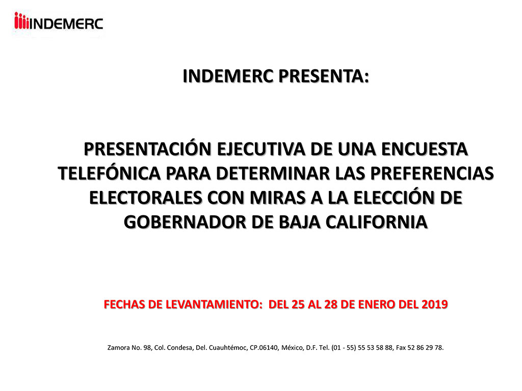 Presentación Ejecutiva de una encuesta telefónica para determinar las preferencias electorales con miras a la elección de Gobernador en Baja California