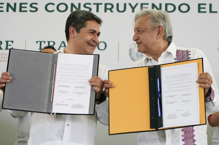 MINATITLÁN, 28 de julio (AlMomentoMX).- Durante la presentación del Plan de Desarrollo Integral que llevará a Honduras los programas mexicanos Sembrando Vida y Jóvenes Construyendo el Futuro, el presidente de ese país, Juan Orlando Hernández, convocó a dar un ejemplo al mundo de cómo se construyen muros de prosperidad, oportunidad y de trabajo.