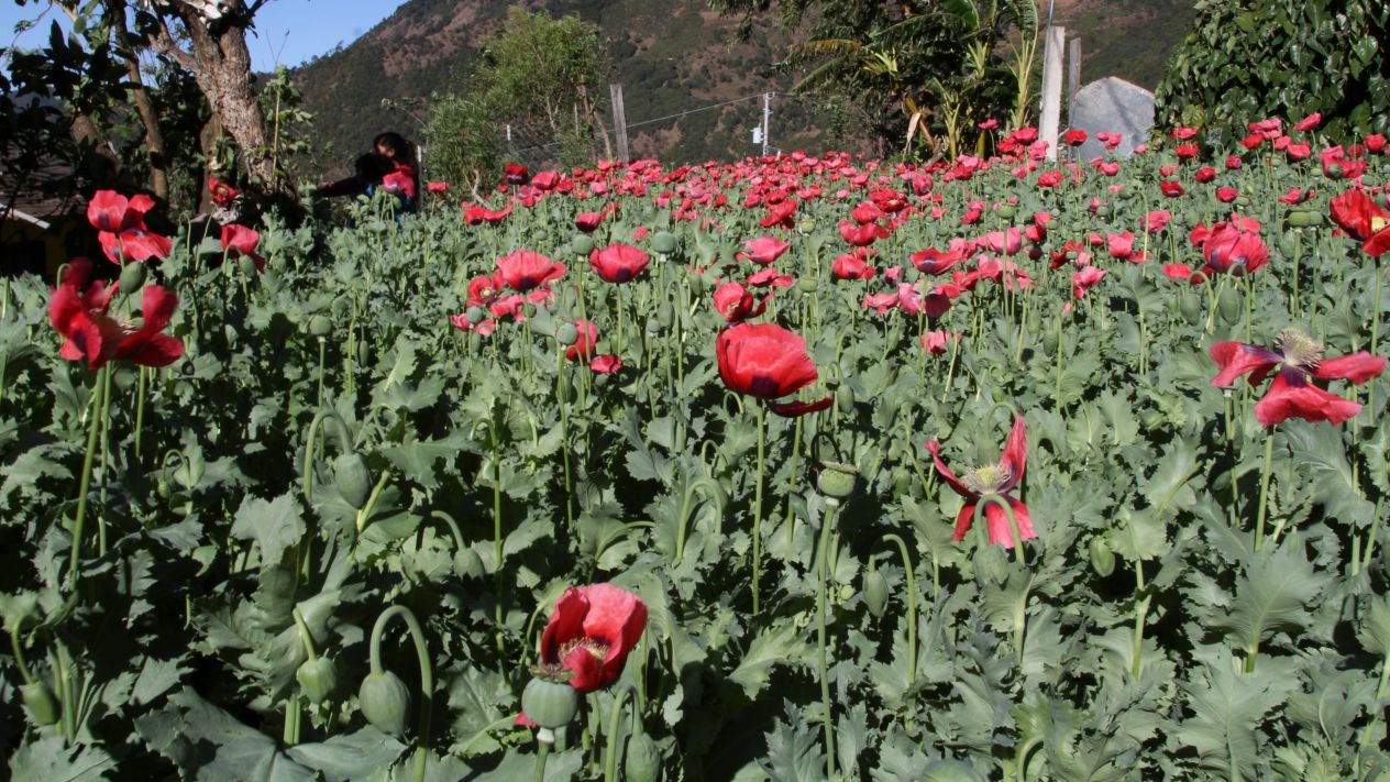 Según la ONU, en México hay más de 28 mil hectáreas de tierra cultivable dedicadas a la amapola, lo que representa la tercera área geográfica más grande dedicada al cultivo de opio, después de Afganistán.