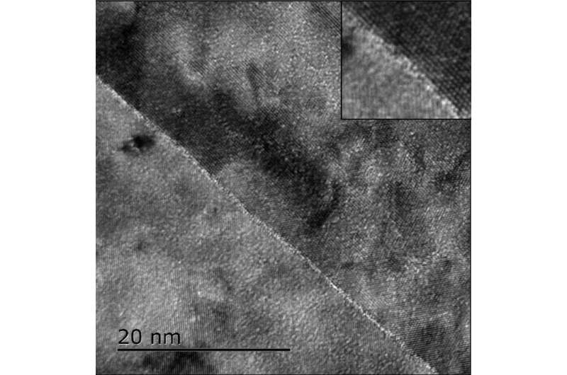 Cuando observas cómo encajan los átomos, muchos materiales tienen una estructura cristalina. De la misma manera que el carbono puede formar diamantes, los metales y los óxidos metálicos pueden formar cristales. Estos cristales son diminutos, normalmente de no más de unas pocas decenas de micrómetros de diámetro, y encajan entre sí con orientaciones aleatorias. Cada cristal se denomina grano. El tamaño, la forma y la composición, así como la forma en que encajan, afectan las propiedades de un material.