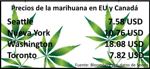 La mariguana es la droga más barata en el mercado negro, un kilogramo de hierba cuesta aproximadamente $80 dólares, $1,532 pesos mexicanos.