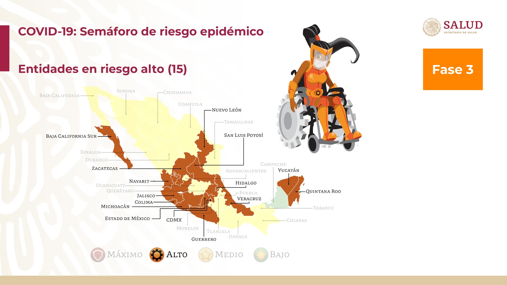 De acuerdo con la Secretaría de Salud del Gobierno Federal, esta vez Quintana Roo fue el único estado en regresar a semáforo naranja; lo que podría derivarse de la reapertura del turismo y de la afluencia aérea en el incremento de vuelos nacionales e internacionales en los Aeropuertos de Cancún y Chetumal.