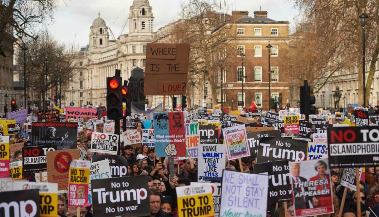 Bajo el lema “Stop Trump March” (Marcha para parar a Trump), se ha convocado a los asistentes frente a los estudios de la cadena BBC para marchar por las principales arterias de Oxford Circus y Regent Street hasta finalizar en la plaza de Trafalgar.