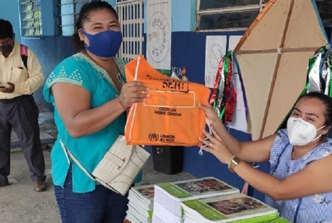 Esta entrega representa un apoyo de ACNUR a familias mexicanas y familias refugiadas que podrían haber sido afectadas en su economía por la contingencia sanitaria, ya que su gasto escolar será menor y, al mismo tiempo, contribuye a promover la permanencia de las niñas, niños y adolescentes en la escuela.