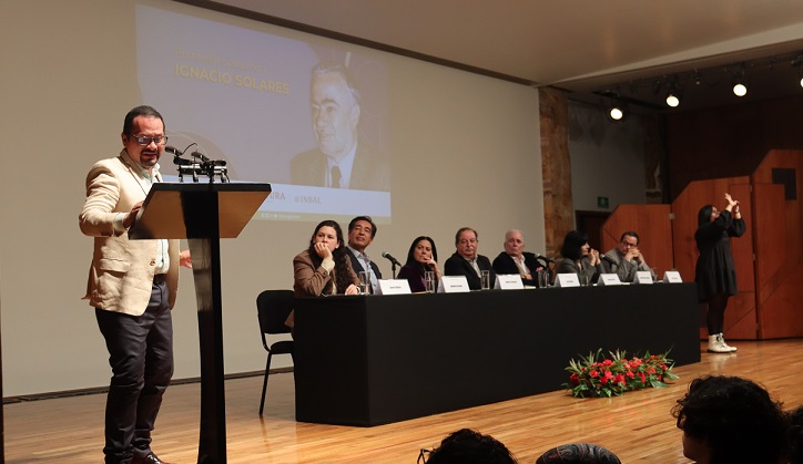 Karen Villeda abordó de forma general la vida y obra de Ignacio Solares, destacando su trayectoria como una de las más prolíficas: “Su labor literaria ha dado a las letras mexicanas un invaluable aporte. Es por eso por lo que hoy, con este sencillo, pero emotivo homenaje, estamos recordando a este hombre de letras que fue narrador, ensayista, dramaturgo, periodista, un hombre multifacético”.