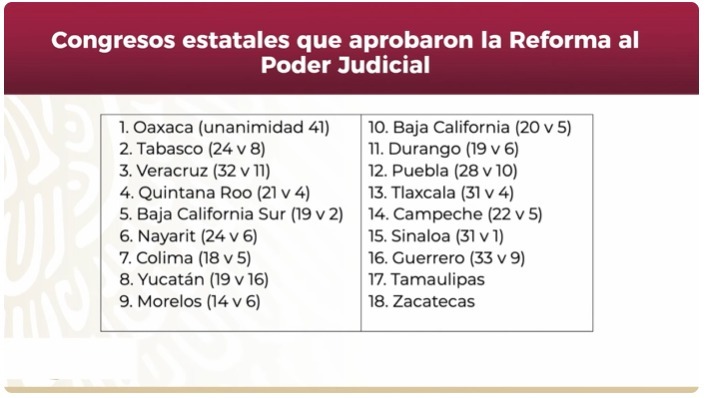 Con la aprobación en los congresos locales, el requisito legal ya ha sido cumplido, y solo resta su publicación en el Diario Oficial de la Federación (DOF).