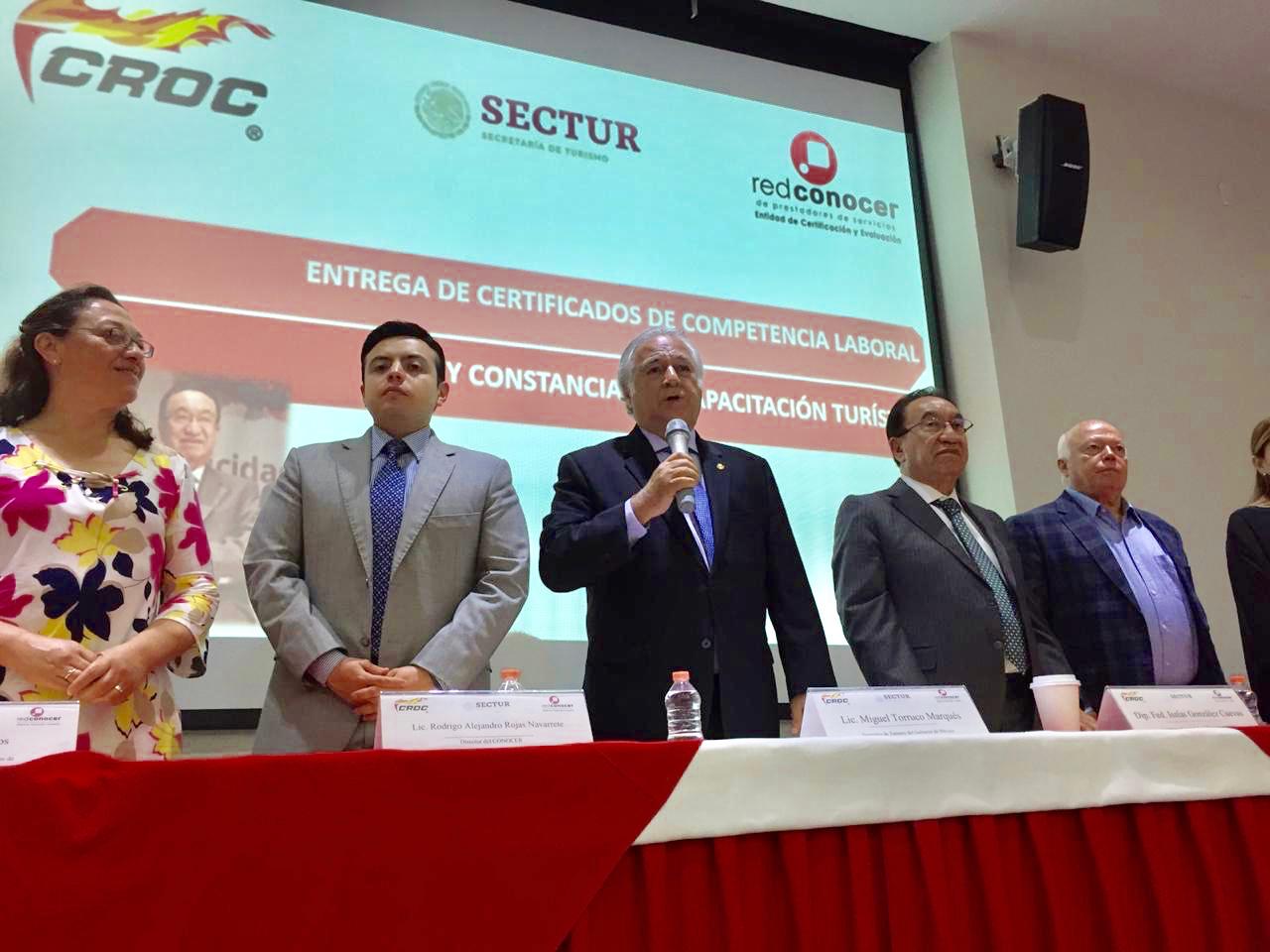 Al entregar las constancias y certificados de las acciones de capacitación realizadas conjuntamente entre la Sectur y la CROC, Torruco Marqués sostuvo que esta Confederación ha sido un gran aliado para impulsar la competitividad y mejorar la calidad en la prestación de los servicios. Y enlistó una serie de acciones que juntos han realizado para el fortalecimiento del sector, como el incremento de la calidad en el servicio y el fomento a la cultura turística.