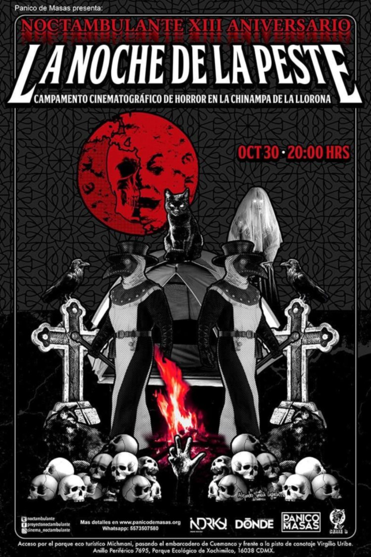 CIUDAD DE MÉXICO.- ¡Atentos, amantes del cine de horror! El próximo octubre, el ya tradicional Noctambulante llevará a cabo una velada cinematográfica nombrada La noche de la peste, la cual, junto con el campamento del pasado 4 de septiembre, marcará su regreso a la cartelera cultural de la zona metropolitana. Simultáneamente, este evento celebrará el 13 aniversario del proyecto, que año con año ha llevado a cientos de personas una variada oferta de actividades y numerosas proyecciones de películas de terror. ¡Entérate de los detalles siguiente campamento!