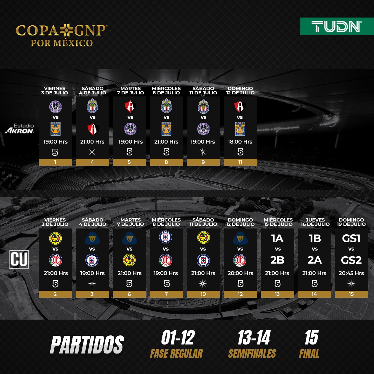 El torneo amistoso estará dividido en dos grupos; el ‘A’ estará conformado por América, Pumas, Toluca y Cruz Azul, y jugarán dentro del Olímpico Universitario; en el ‘B’ esta Chivas, Atlas, Mazatlán y Tigres, y disputarán sus encuentros en tierras tapatías.