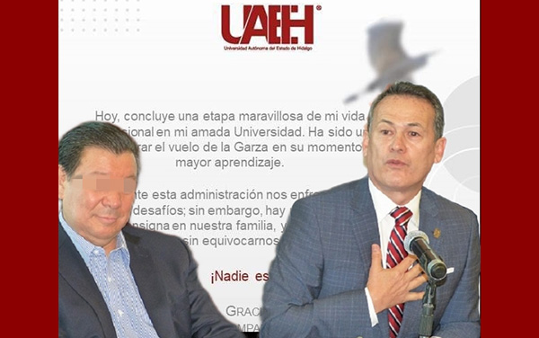 El ahora ex rector cubría un interinato que fenecía en marzo de 2023 y le sustituye Octavio Castillo Acosta, aunque surgen ya versiones de que la UAEH podría ser “barrida” en forma sustancial de “todo lo que huela” a la “Sosa Nostra”, mafia universitaria encabezada por Gerardo Sosa Castelán, procesado desde agosto de 2020 por delincuencia organizada y operación con recursos de procedencia ilícita, y quien desde el mes de febrero de este año se beneficia de “prisión domiciliaria” al alegar padecimientos cardíacos severos.