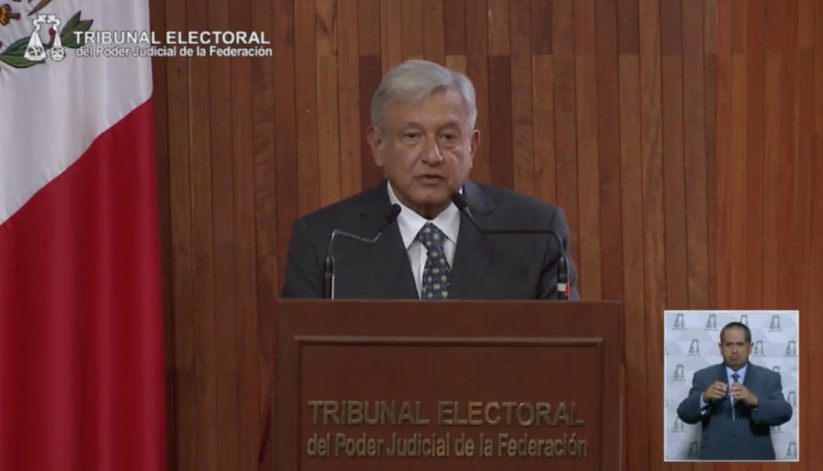 Durante  su discurso tras recibir su constancia de mayoría, Andrés Manuel aseguró que la gente votó por un gobierno honrado y justo; y aseveró que “la mayoría de los mexicanos están hartos de la prepotencia, la deshonestidad, la ineficiencia, desean poner fin a la corrupción y a la impunidad” de anteriores administraciones.