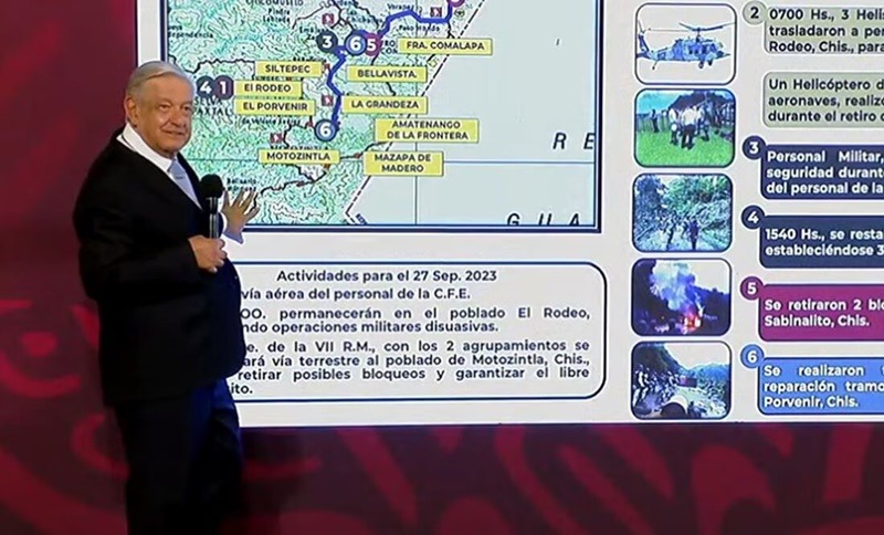 Redacción MX Político.- El presidente Andrés Manuel López Obrador afirmó que ya se restableció el servicio de energía eléctrica en los municipios afectados cercanos a Frontera Comalapa, en Chiapas, tras los bloqueos carreteros y el desfile criminal.