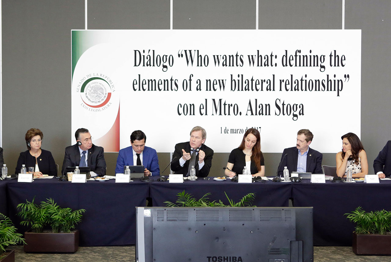 Integrantes de la Comisión de Relaciones Exteriores, que dirige la senadora Gabriela Cuevas Barron, se reunieron el miércoles de esta semana, con el estratega electoral estadounidense y presidente de la empresa Zemi Communications, Alan Stoga, con quien intercambiaron opiniones respecto a la relación bilateral México-Estados Unidos.