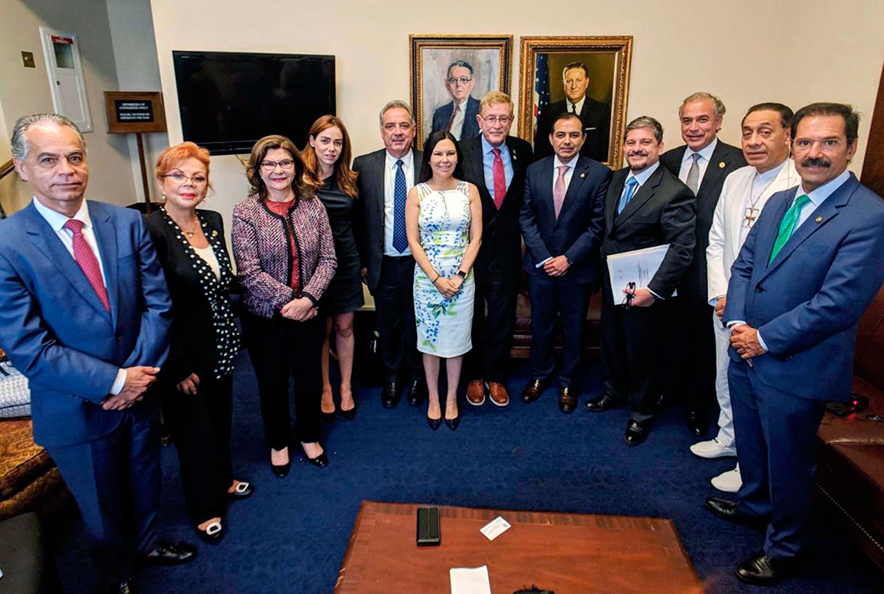 Senadores y diputados de la Comisión Permanente del Congreso de la Unión se reunieron el martes de esta semana, con diversos congresistas de Estados Unidos, entre ellos, Michelle Lujan Grisham, Presidenta del Caucus Hispano del Congreso; Will Hurd (R-TX) Patrocinador de la iniciativa bipartidista U.S. Act, la cual propone una solución legislativa para los Dreamers; Paul Cook y Ron Johnson, Presidente del Comité de Seguridad Interna del Senado.