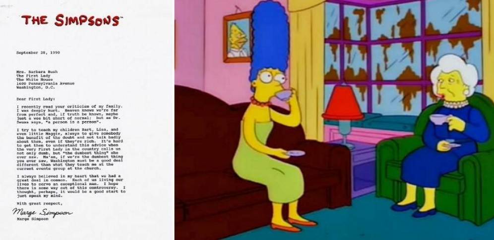 En la década de 1990, Barbara Bush dio una entrevista a la revista People en la que expresó que Los Simpson era la serie de televisión más estúpida. En ese momento, creció la polémica por lo que Marge, uno de los personajes, escribió una carta en la que expresó su postura y defendió a su familia.