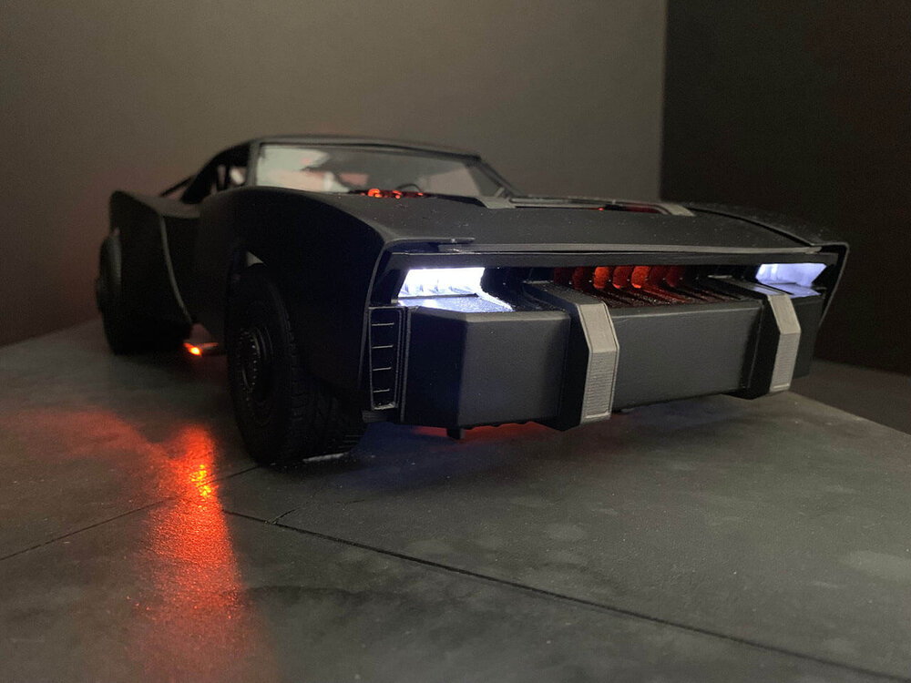 Jeff Frost batimóvil Se puede apreciar que el batimóvil luce un aspecto de un clásico setentero como un Mustang o un Camaro, mientras que la parte posterior nos presenta toda la potencia del auto.
