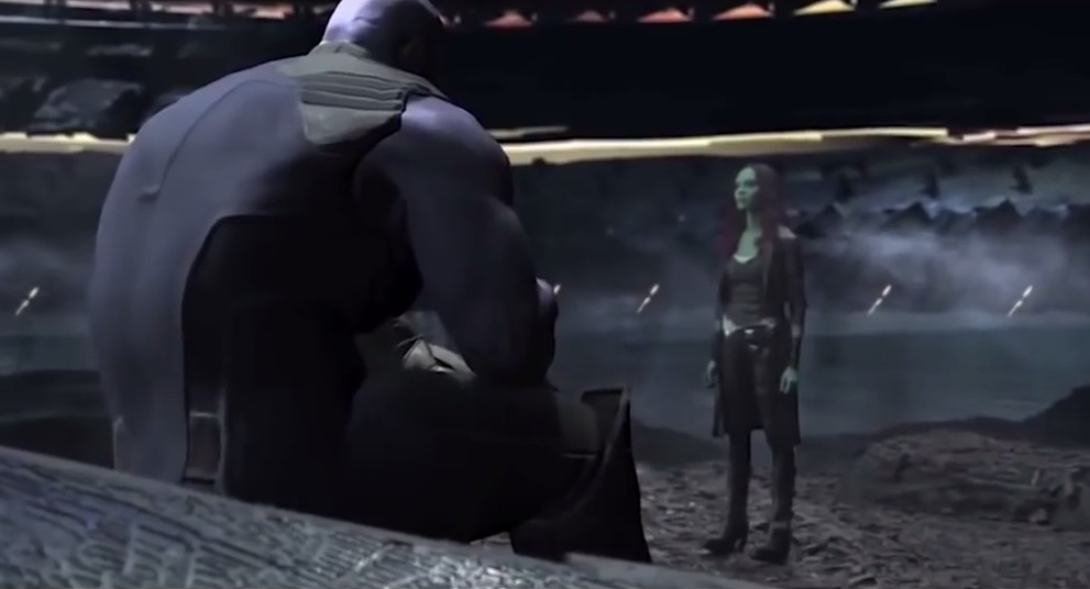 En la escena, Thanos usa la gema de la realidad para recordar un momento del pasado de ambos, donde Gamora aún conquistaba planetas en su nombre. Esto impulsa una discusión entre ambos, donde el Titán Loco dice: