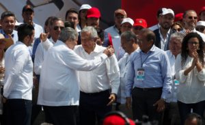 El tripartismo de la CTM se hizo presente cuando llegó López Obrador llegó a la Plaza de la Constitución, donde lo esperaban los sindicalizados afiliados a la CTM.