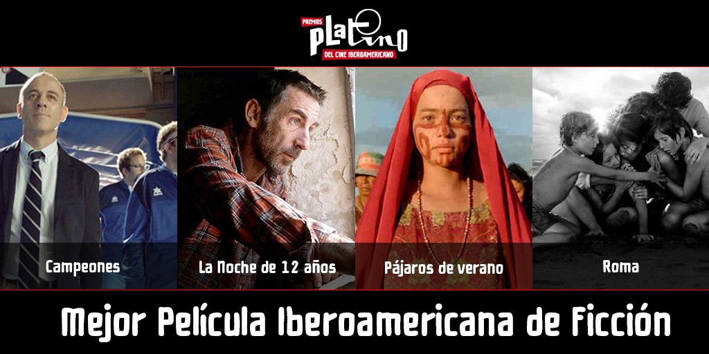 Campeones, Roma, La noche de 12 años y Pájaros de verano lucharán por el premio de mejor película iberoamericana de ficción. Mientras que sus directores –Javier Fesser, Alfonso Cuarón, Álvaro Brechner y Cristina Gallego, y Ciro Guerra, respectivamente- optarán al galardón de mejor dirección.