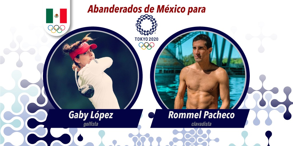 El Comité Ejecutivo del COM designó a la golfista @GabyLopezGOLF y al clavadista @Rommel_Pacheco, como abanderados de la delegación mexicana que participará en los próximos Juegos Olímpicos #Tokyo2020 pic.twitter.com/De24uYq2HX