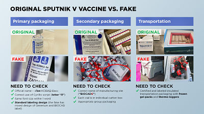 This is a comparison of the legal and official Sputnik V with the fake Sputnik V that was seized. pic.twitter.com/EmZrH68F81