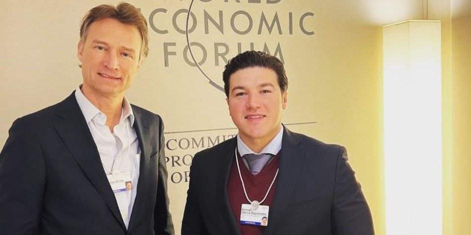 Redacción, Noticias MX Político.-  En su segundo día de actividades en el Foro Económico Mundial en Davos, Suiza, el gobernador Samuel García Sepúlveda se reunió con Dolf van den Brink, CEO de Heineken, para hablar sobre materia de inversión en tecnología para eficientizar los procesos en la planta de Nuevo León.