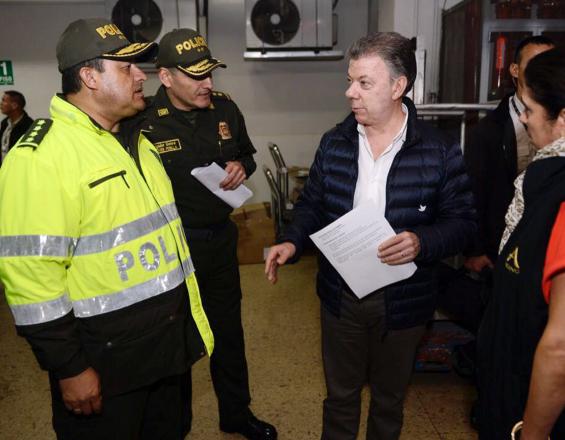 El presidente Juan Manuel Santos se trasladó hasta el lugar el centro comercial Andino, lugar donde se produjo el atentado/ Foto: EFE