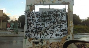 La narcomante advierte: “Esto es una muestra de que ya estamos aquí fue por no alinearte PHILLIP-BMP, es el inicio vamos a cortar cabezas de Golfos, PELONES, chapulines, Atte el FAYO Z de la vieja ESCUELA” (sic).
