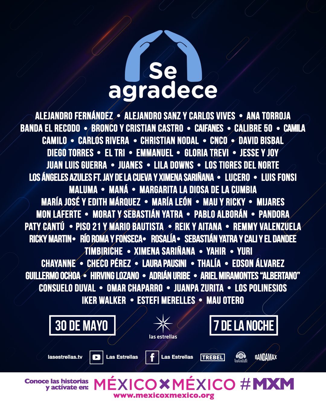 CIUDAD DE MÉXICO.- El trabajo incansable y valiente de los trabajadores de la salud que se han enfrentado a la pandemia de coronavirus merece ser reconocido; es por esto que más de 100 famosos participan en el evento ‘Se Agradece‘.