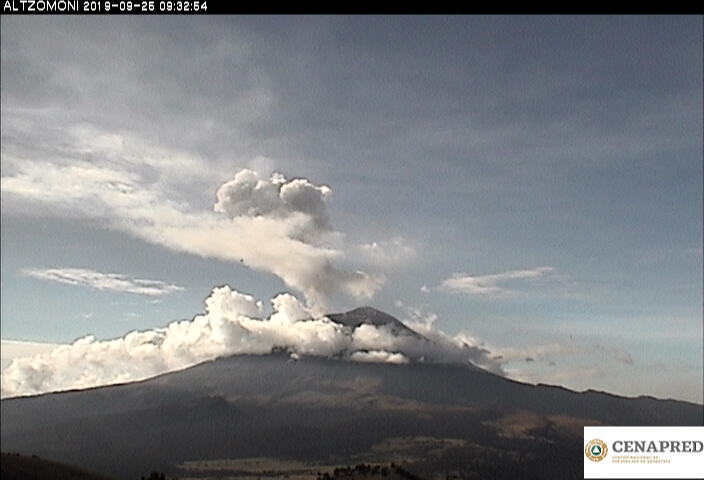 Desde hoy por la mañana y hasta el momento de este reporte se han observado ligeras emisiones de vapor de agua, gases volcánicos y bajo contenido de ceniza que el viento dispersa de manera preferencial al Este-Noreste.