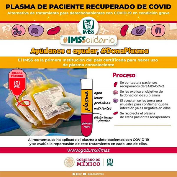 Pero a pesar de que más de 20 mil personas han sido dadas de alta tras formar parte de la estadística de esta epidemia, aún no se dispone de plasma suficiente para utilizarlo en más enfermos.