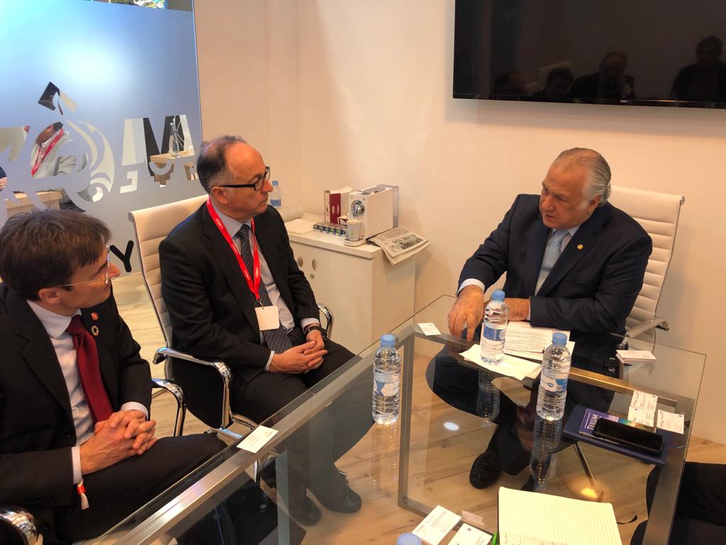 MADRID, ESPAÑA.- Durante su último día de trabajo en la Feria Internacional de Turismo de España (Fitur), el secretario de Turismo del Gobierno de México, Miguel Torruco Marqués, se reunió con el presidente de Iberia, Luis Gallego, con quien conversó sobre el incremento de rutas y frecuencias de esta línea aérea hacia nuestro país.