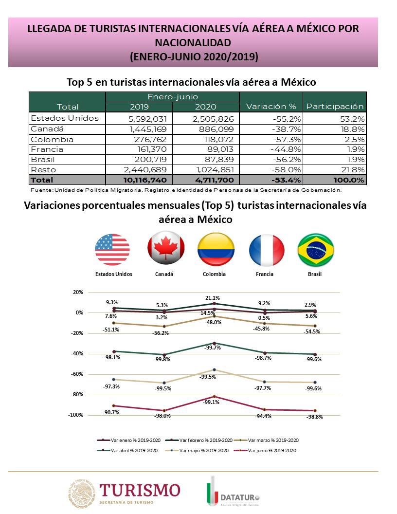 De acuerdo con datos del Banco de México y el Instituto Nacional de Estadística y Geografía (Inegi), la llegada de turistas extranjeros en 2019 fue del 9 por ciento, pero la pandemia del coronavirus podría reducir el consumo turístico 1.6 billones de pesos mexicanos.
