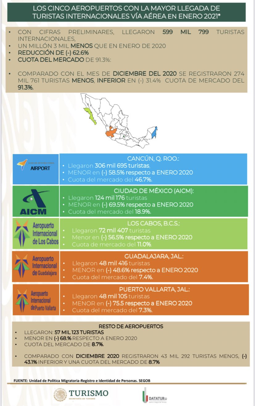 Sectur estima que 9 millones de turistas visiten México en 2021