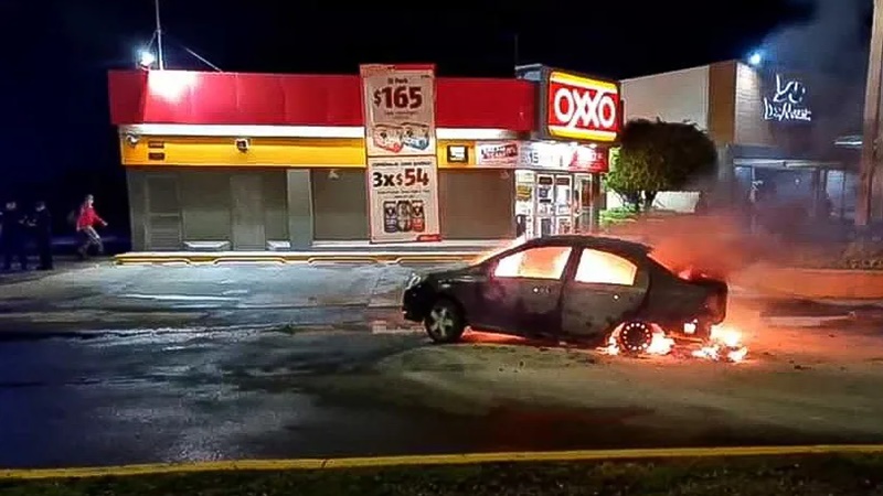 Las agresiones se extendieron también a Guanajuato, donde hubo 11 detenidos, seis bloqueos, 29 negocios quemados, la mayoría de ellos fueron 25 tiendas Oxxo, 26 vehículos incinerados y bidones de gasolina decomisados.